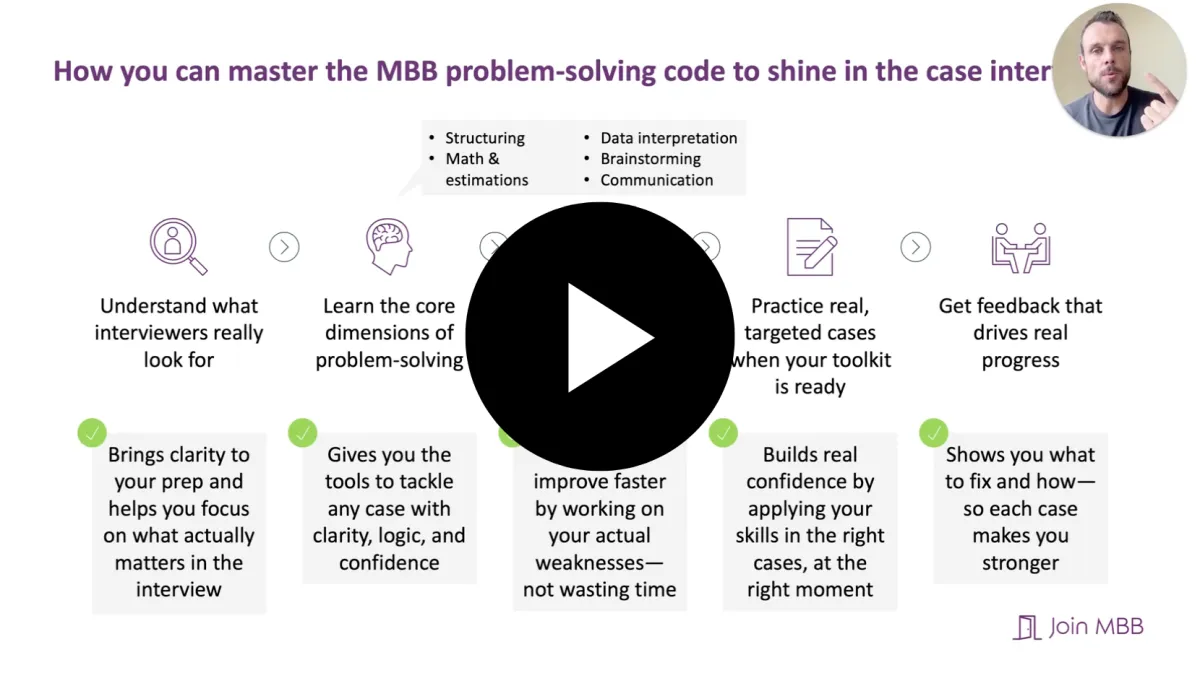 After 13+ years in consulting, including 6 as an Associate Partner at McKinsey, I now focus on helping others reach the same heights. I’ve coached 150+ candidates into MBB and top firms, and as an ICF-certified Executive Coach, I help ambitious professionals perform at their very best.